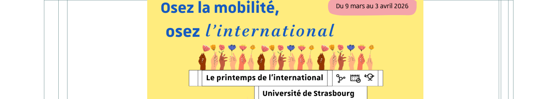Ouvert à tous.tes les étudiant.es de l'Université de Strasbourg, sur inscription jusqu'au 20 mars inclus : https://sondages.unistra.fr/index.php/564798?lang=fr